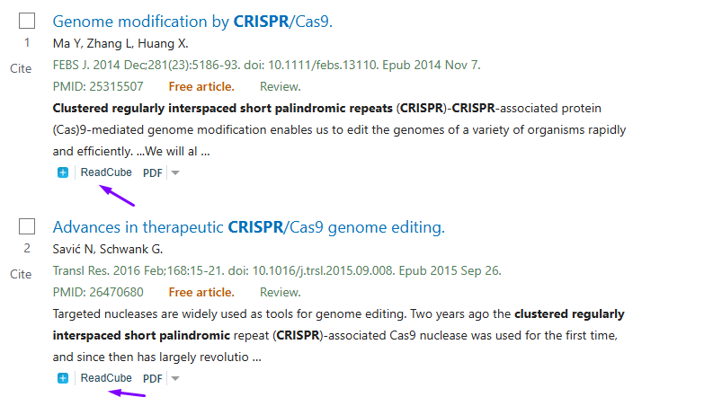 You can import one or multiple references directly from search results in a couple of different ways. To import selected articles, look for the blue (+) ReadCube button