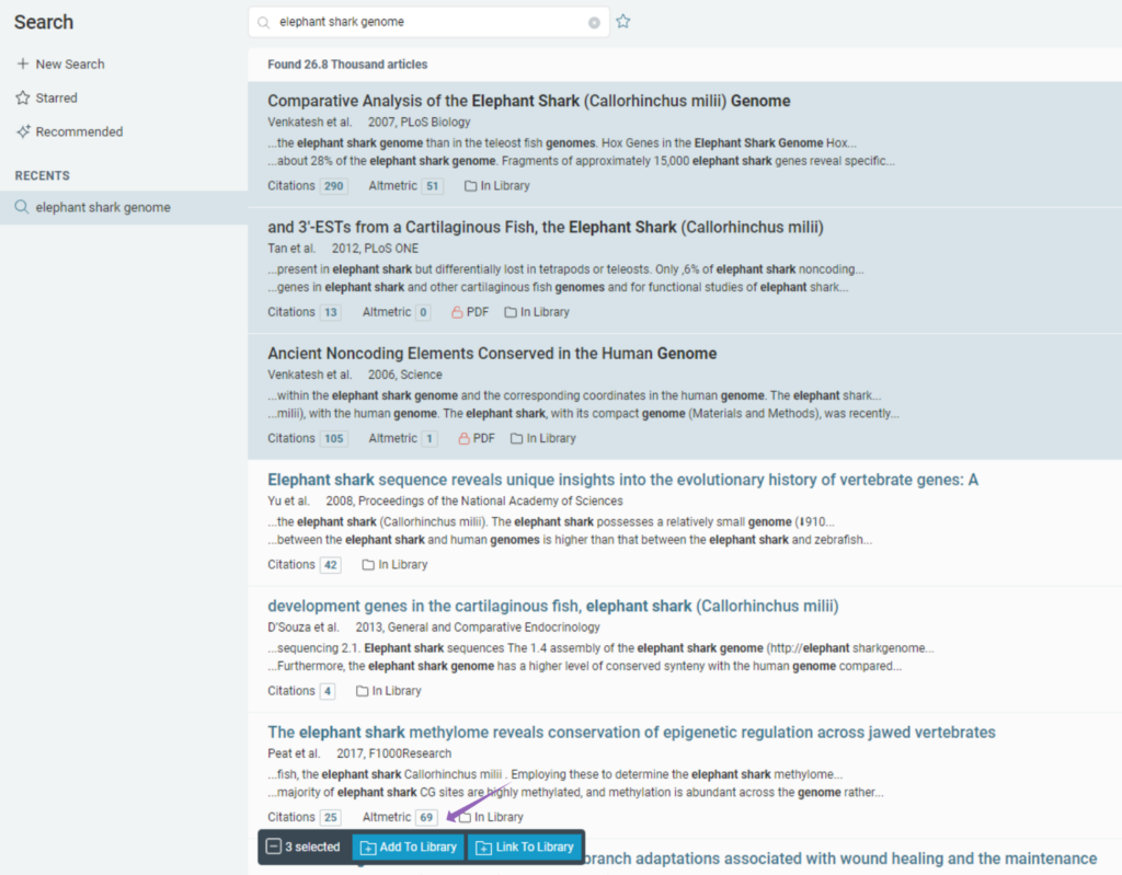 With Papers Pro you have access to full-text search, powered by Dimensions. This means that instead of searching the metadata of articles (title, author, journal), Papers will search the entire text of the paper to see if it’s a match for your query.