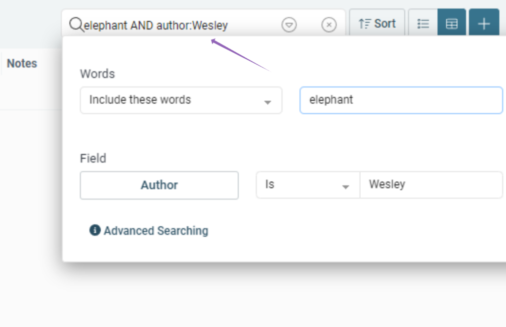 For instance, using our in app search you can specific that you’re looking for an article with the word “elephant” and the author “Wesley”; as you type, you’ll notice your terms populating in more search friendly terms in the search field above: