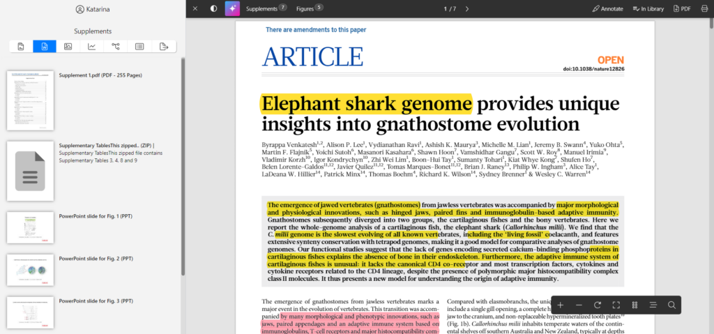 This feature makes it easy to review and manage additional research materials included with your articles.