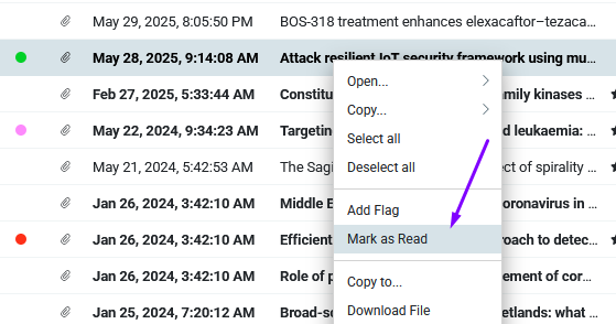 You can also mark any reference in your library as “read” or “unread” by right-clicking over the reference and looking for the “mark as read” and “mark as unread” options