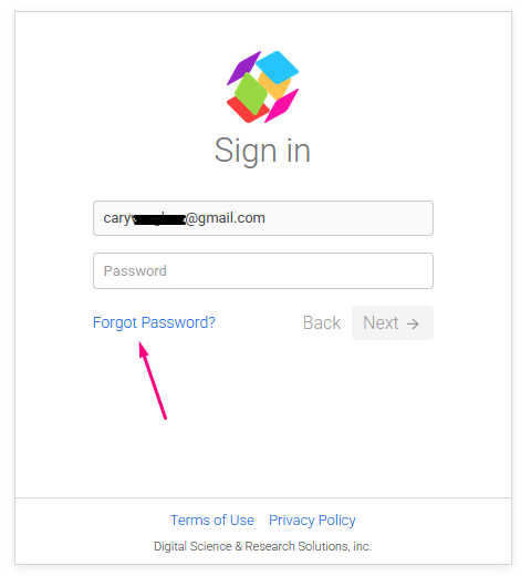 On the following page, type in your email address and click “forgot password” on the bottom left