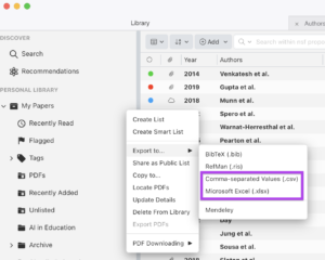 Clean up your tag list quickly by exporting your library or lists as a CSV file. You can then open the file up in your preferred spreadsheet software, use the search/replace function to easily change and delete tags. Once updated, upload this edited CSV file into Papers. All of the tag updates you made in the CSV file will automatically be applied to your library.