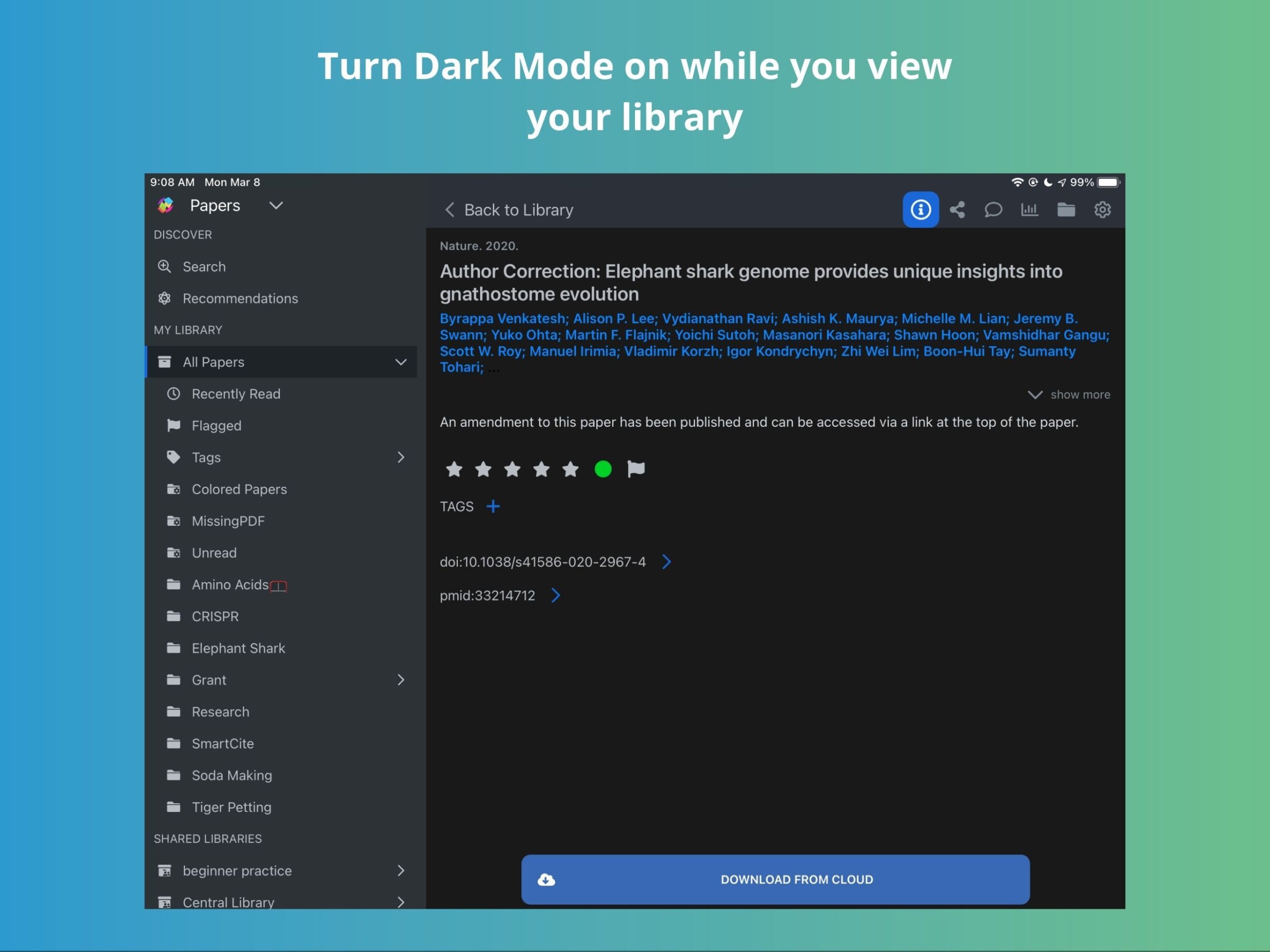 SmartLists can now get default sorting to them. Want your Elephant Shark SmartList to be sorted always by rating or notes? This feature should help you curate your library just the way you want it. As an additional note and our goal of making the app as accessible as possible, we have also added the ability to add emojis to Library names. We hope this makes all your that much easier. Just check out my Elephant Shark Research and I love Science shared libraries!