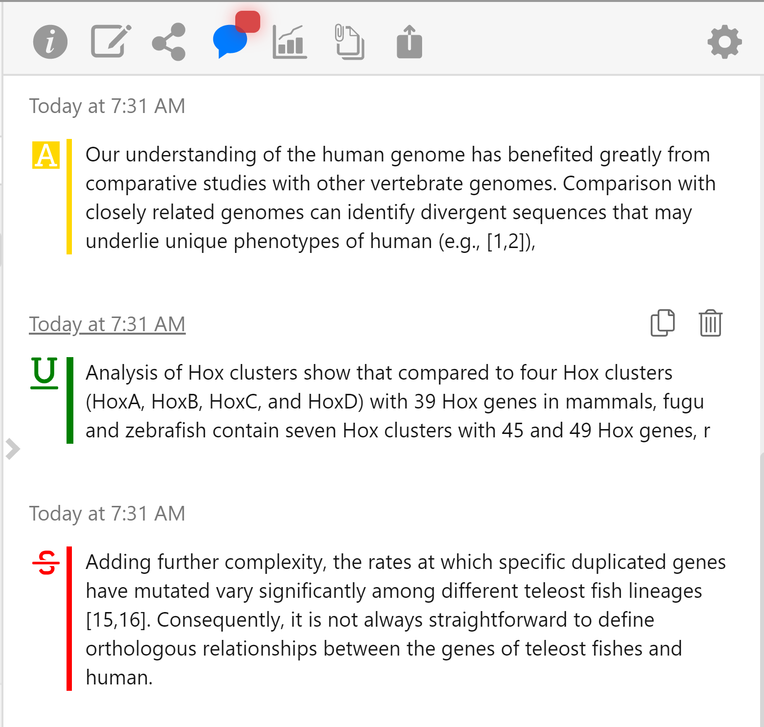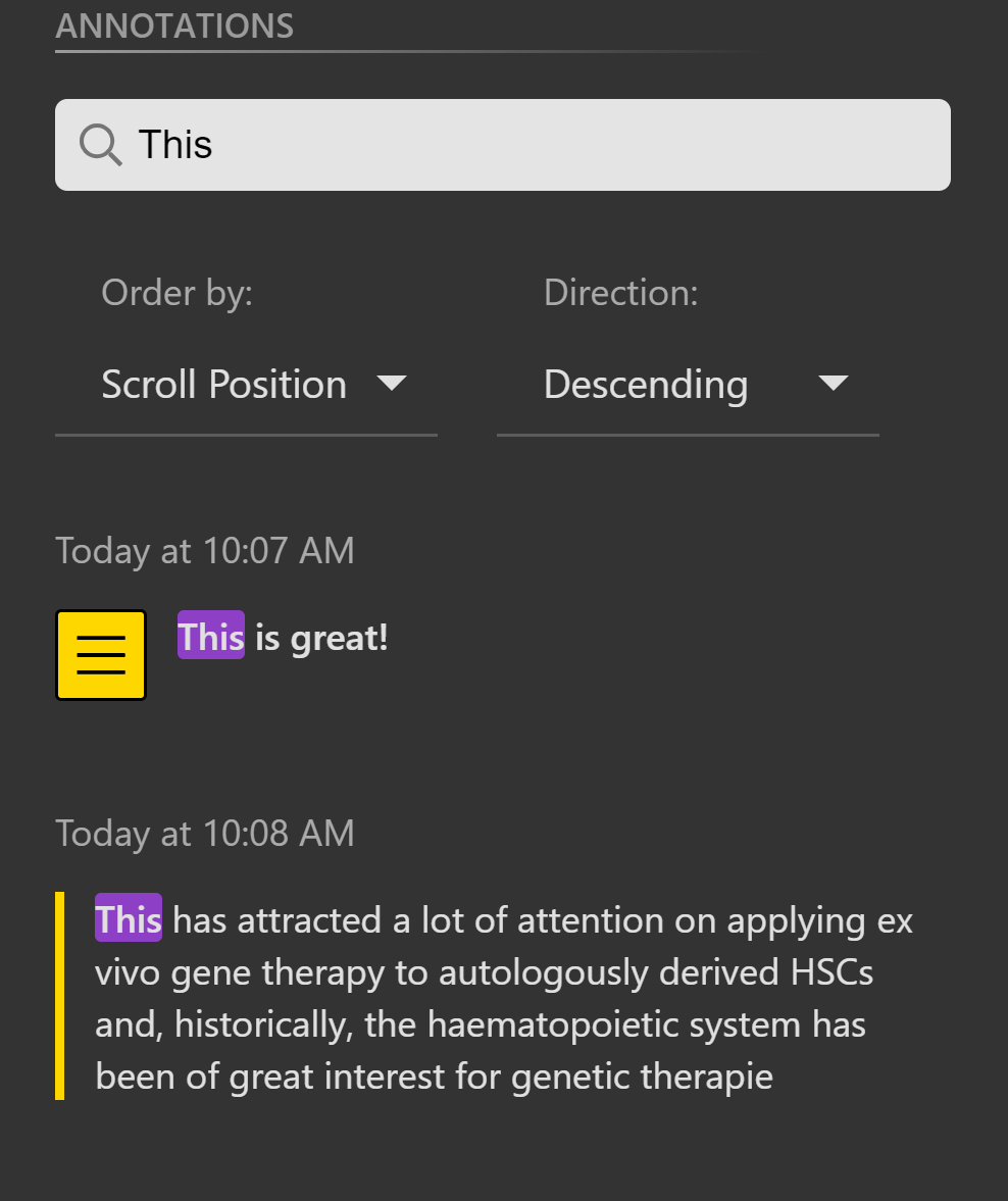 We also added a badge to the notes panel to let you know if you have annotations or notes on that paper. But what use is a badge if I can’t see my annotations did you say? We are happy to release a built from scratch notes panel that will look the same in the reader as it does on the right pane of the main app. You can filter on that specific paper right on the main app using the filter. A lot of work went into this so we hope you enjoy the new functionality.