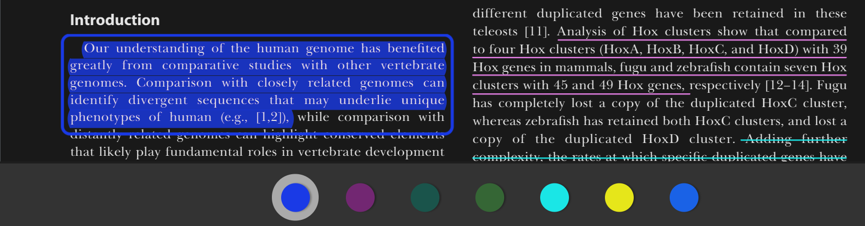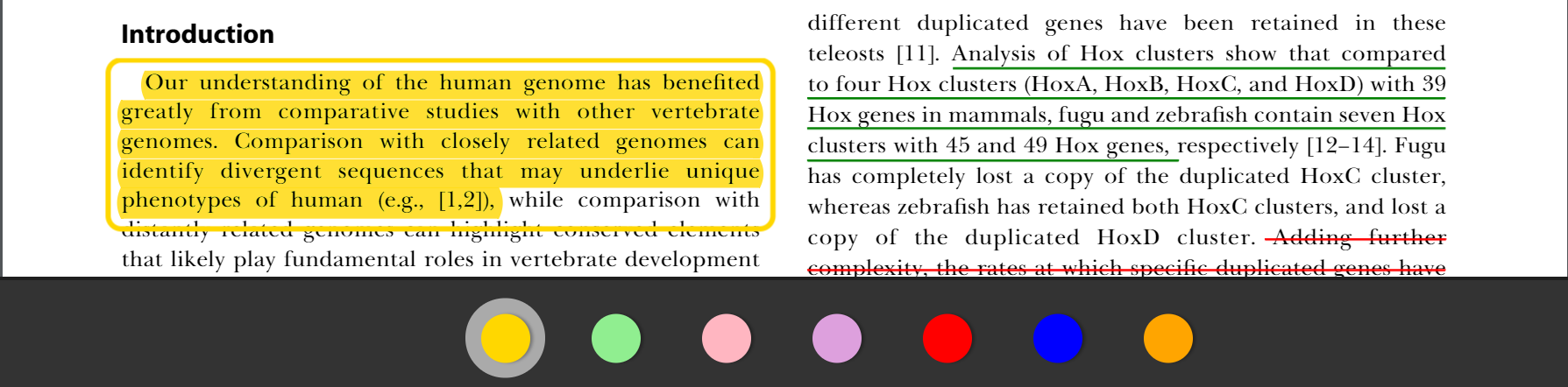 If you were confused about what type of annotation you had on the notes menu before, fear not! as we tell you with an icon so you can easily distinguish between highlights, underlines, or a strike-through.