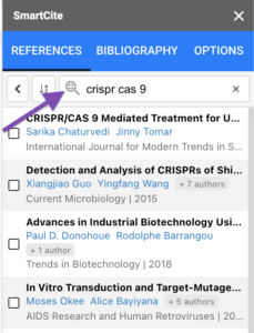 If you forgot to add a citation to your library or need to look for one, seamlessly do it right from within SmartCite! Click on the world search icon in the search bar and you are now able to search the web.
