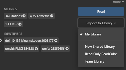 Have you ever had a shared library that you wanted to import your recommendations straight to? Or maybe you are using the ReadCube search to find new content. Well as of today you can now dump those references straight into a shared library of your choosing. As always if you want to import to a certain list you can always drag and drop.