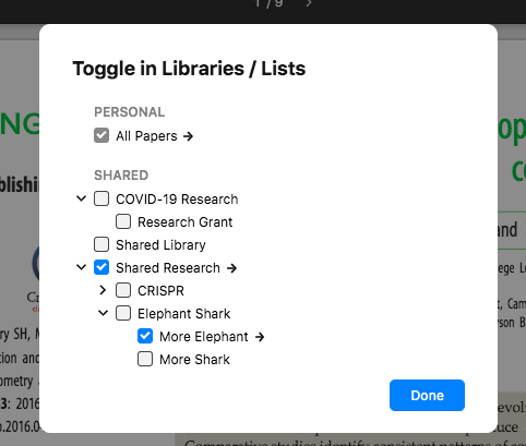 - Allow recommended files to be added to the shared library – We made it so you can see what libraries you have a recommended or searched paper in as well as giving you the option to change the position.