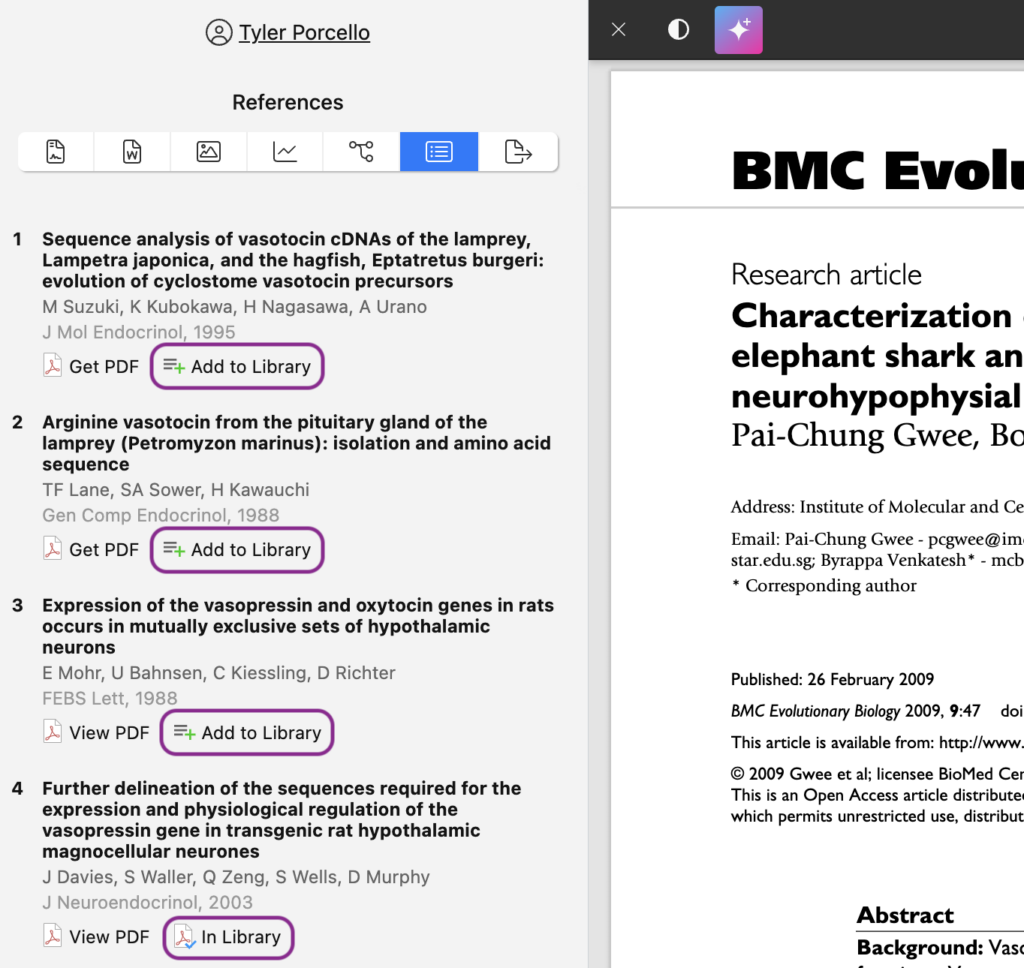 - Papers will automatically recognize references or PDFs already in your library.