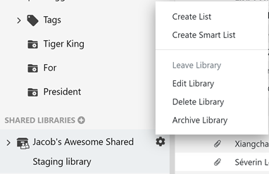 Last but not least we gave you the ability to leave shared libraries by yourself. Anyone who is part of a shared library knows that before you required the Owner to remove you. You can do this by right-clicking any shared library or hitting the gear. Note that you can’t leave a shared library if you are the only Owner on the shared library.